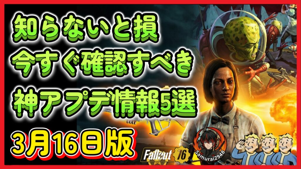 【知らないと損】Fallout76 今すぐ確認すべき神アプデ情報5選【S24】